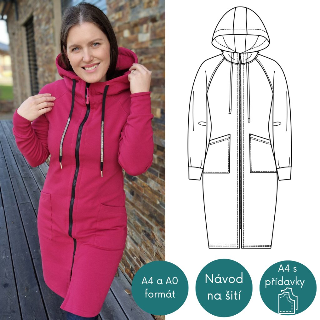 Bára je dlouhá mikina na zip, která zahřeje, hezky sedí a zvládnete ji ušít i s menšími zkušenostmi. Díky kapuci, kapsám a prodloužené délce je to skvělý kousek na každodenní nošení.
