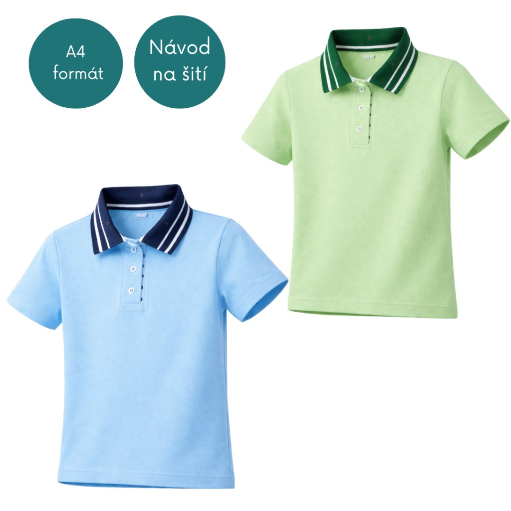 Střih na dětské klasické tričko s límečkem volnější liluety je rýsovaný v profesionálním programu a převedený do PDF. Střih je třeba vytisknout a poslepovat.