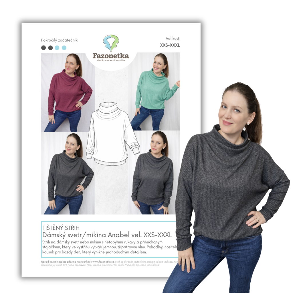 Tištěný střih na dámský svetr/mikinu Anabel - vel.XXS-XXXL