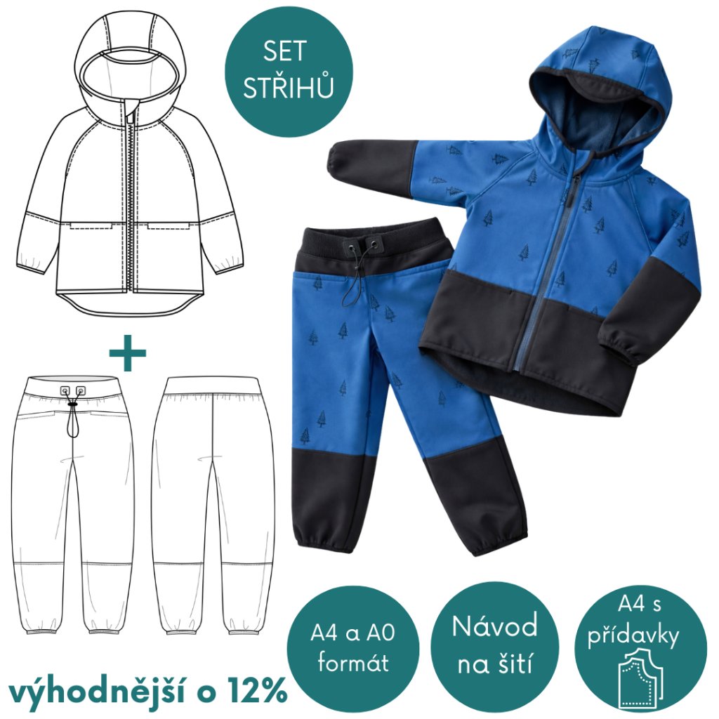 Tento set je ideální, pokud chcete ušít dětem rovnou celý softshellový komplet ze stejného materiálu.