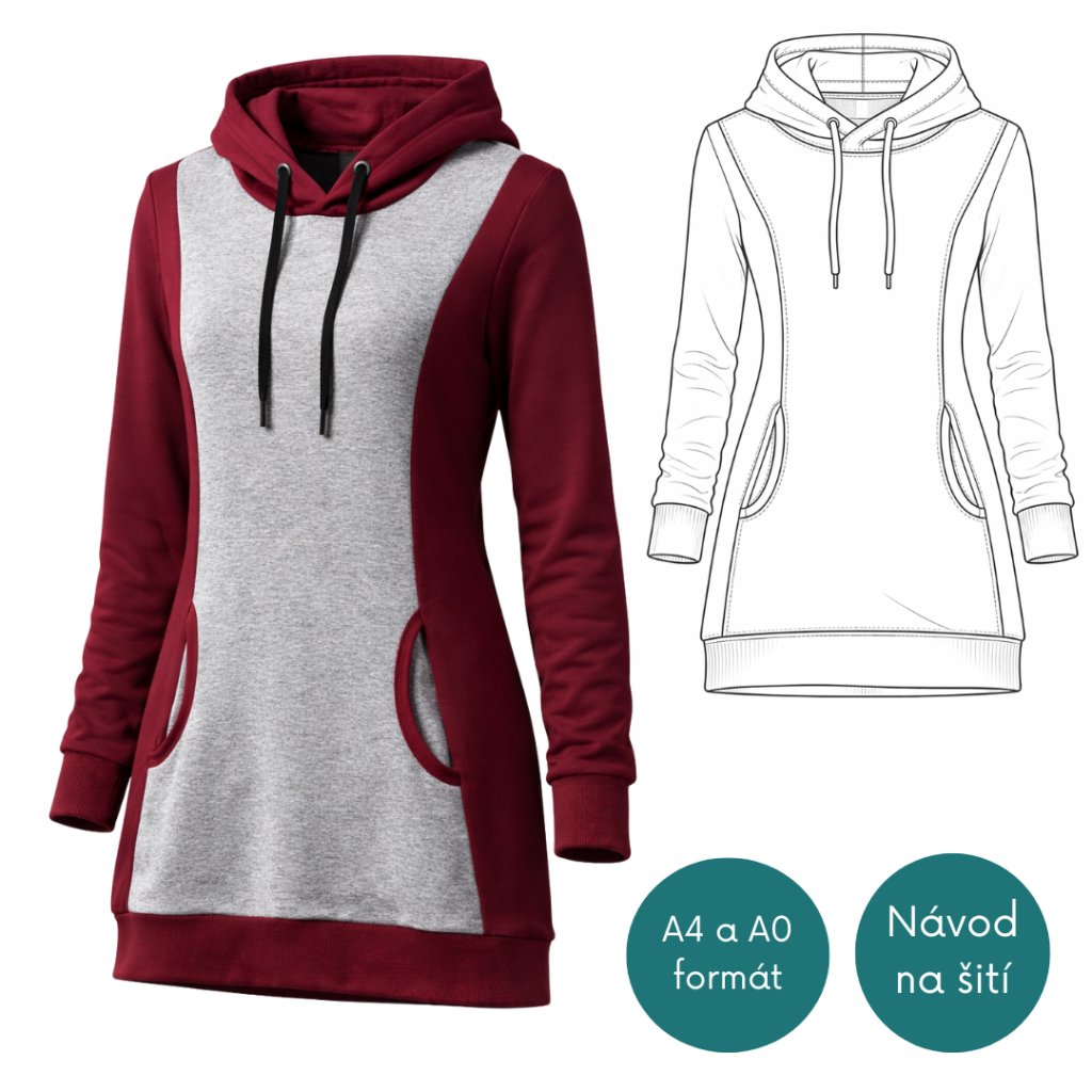 Střih dámské mikinošaty Relax vel. XXS-XXXL (108)