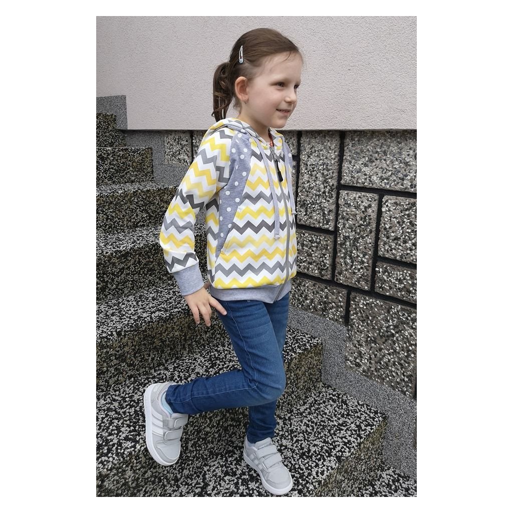 Střih na mikinu s kapucí volnější siluety s šikmým bočním dílkem s kapsami ve švu. Mikina obsahuje variantu s kapucí a také stojáček. Střih je rýsovaný v profesionálním konstrukčním programu a převedený do PDF formátu. :-) Střih je třeba vytisknout a poslepovat! Neobsahuje přídavky na švy!!! Velikosti odpovídají skutečné výšce dítěte, před stříháním doporučuji přeměřit délku mikiny a rukávů s aktuálně nošenou mikinou. !!! Střih v PDF zasílám po zaplacení na váš email !!! Střih nesmí být dále šířen a není určen ke komerčnímu využití !!!