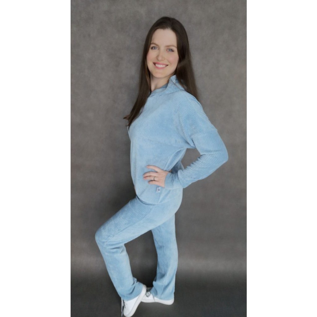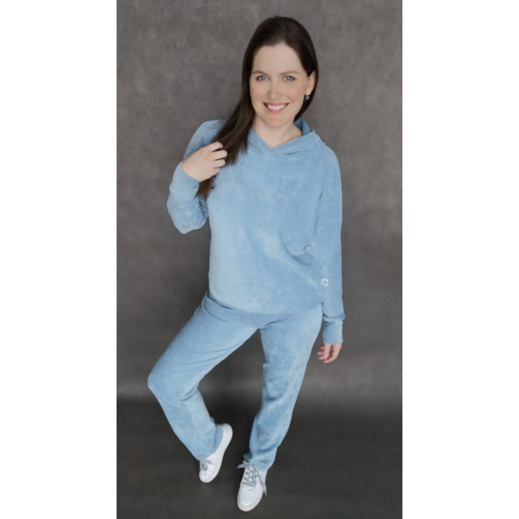 Tento střih na dámskou domácí soupravu je perfektní volbou pro všechny, kdo hledají pohodlný a přitom moderní outfit na doma. Horní díl tvoří mikina s netopýřími rukávy a jednoduchou kapucí, která krásně sedí a poskytuje maximální volnost pohybu. Dolní díl představují klasické volnější tepláky se dvěma variantami – s kapsami nebo bez kapes, a s možností zakončení nohavic náplety nebo bez nich. Skvělý set na lenošení, cvičení i volnočasové aktivity.