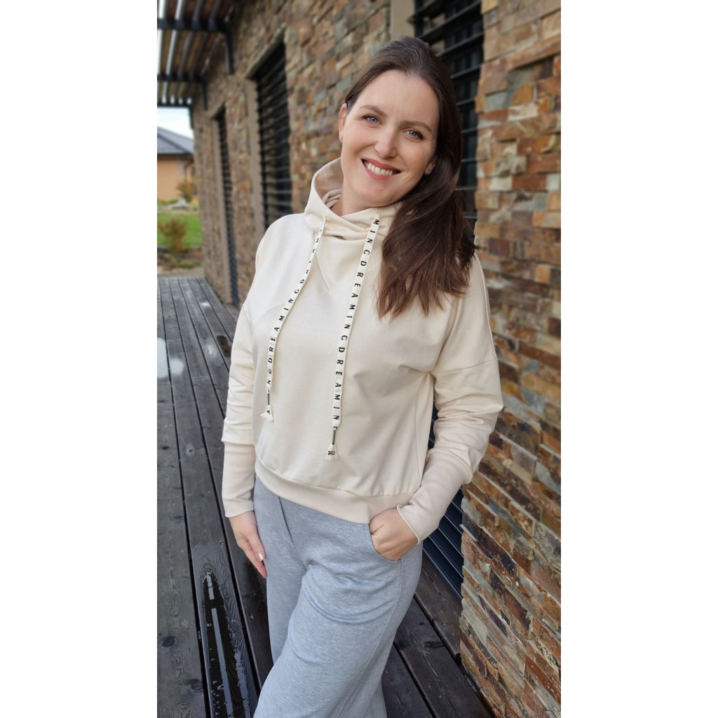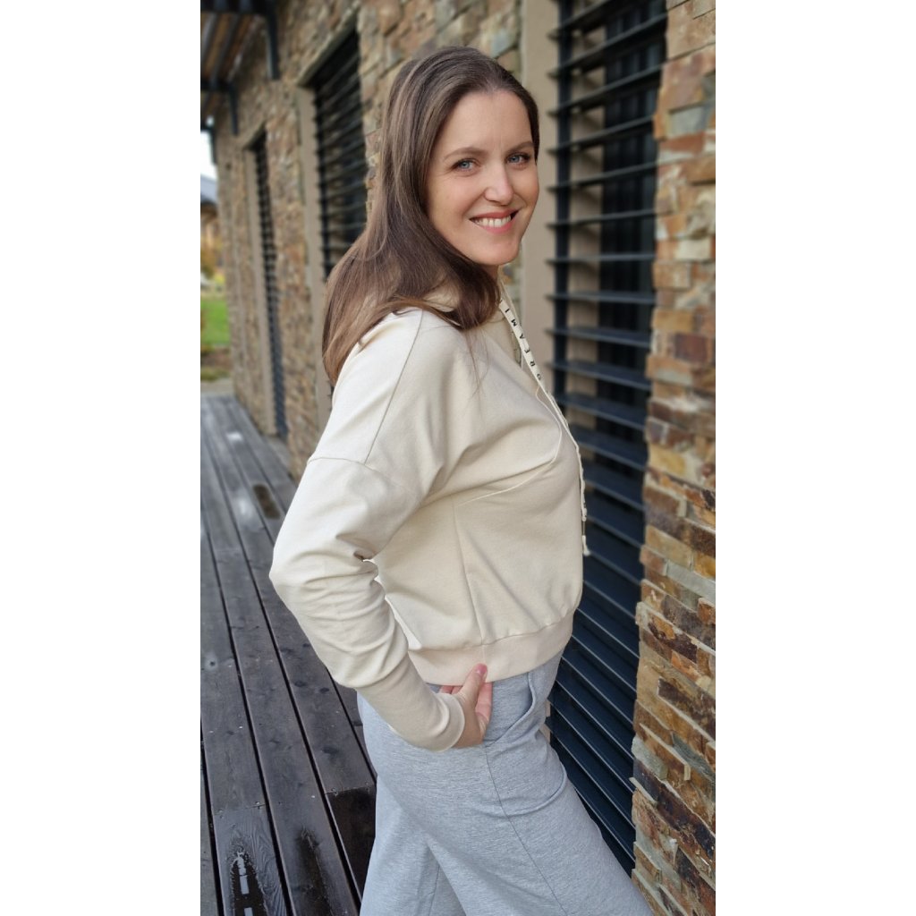 - Univerzálnost a styl – Mikina je univerzálním doplňkem k módním širokým kalhotům, teplákům i legínám.