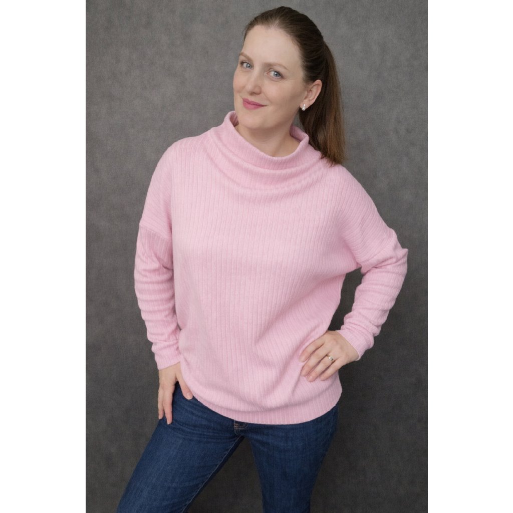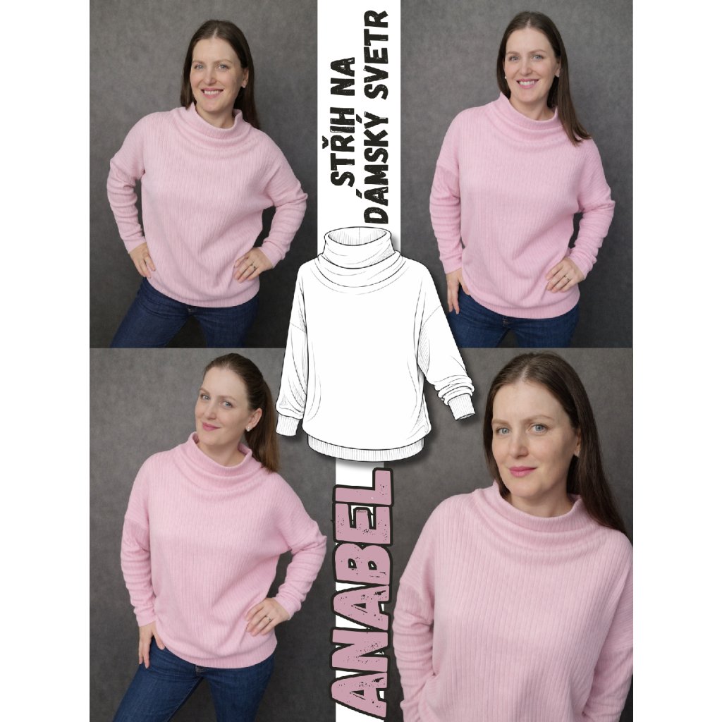 Anabel je PDF střih na mikinu nebo svetr s přinechaným stojáčkem, který ve výstřihu vytváří jemnou, třípatrovou vlnu. Jednoduchý, pohodlný střih s krásným detailem, který z něj dělá skvěle nositelný kousek na každý den. Hodí se z teplákoviny i svetrové pleteniny a zvládnou ho i mírně pokročilé začátečnice.
