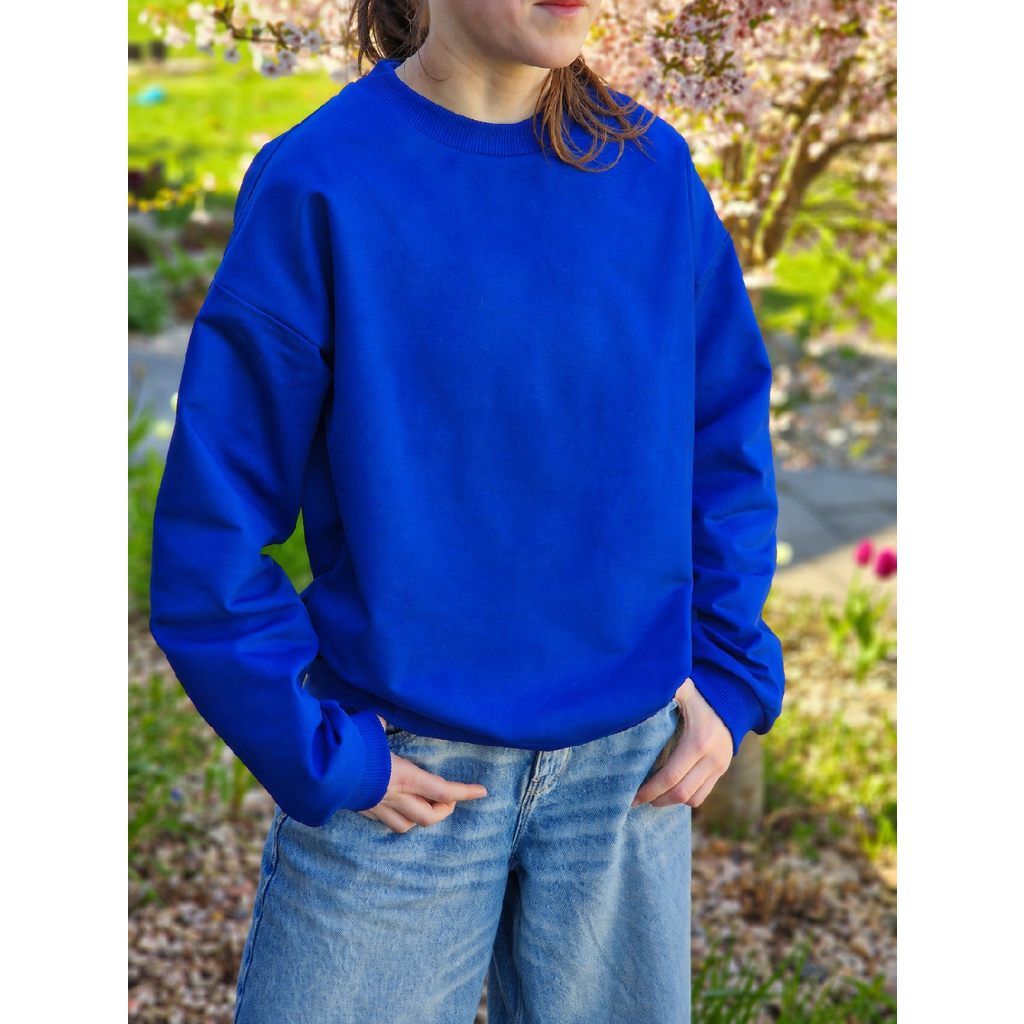 Oversize dětská mikina je jednoduchý PDF střih s pohodlným, volnějším střihem, který skvěle sedí a dopřeje maximální komfort i větším dětem a teenagerům. Je to přesně ten typ kousku, který si oblíbí na každodenní nošení, do školy, ven i jen tak na doma.