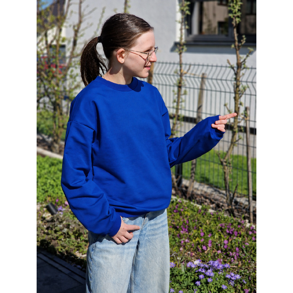 Díky své jednoduchosti je střih vhodný i pro ty, kdo se v šití ještě rozkoukávají, ale zároveň nabídne dost prostoru pro vlastní kreativitu. Mikina je rychle ušitá, nenáročná na materiál a skvěle funguje v jednobarevném i výraznějším provedení.