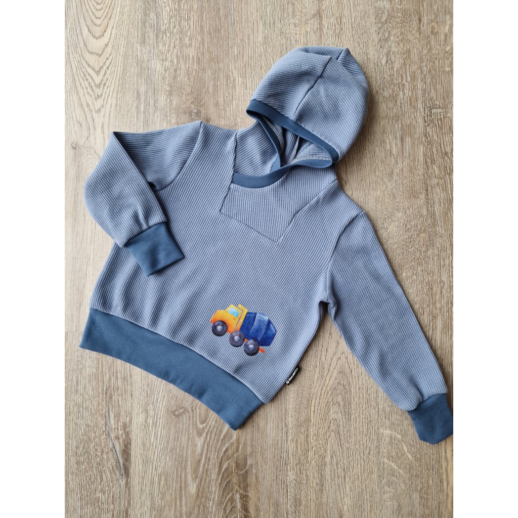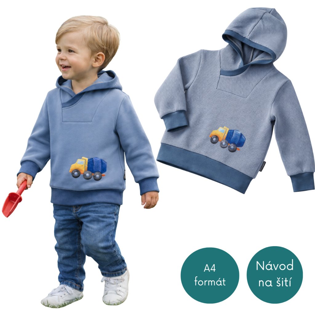 Střih na mikinu s kapucí či límcem. 2 varianty v jednom. Střih je celý rýsovaný v ruce a převedený do PDF formátu. Střih je třeba vytisknout a poslepovat! Střih je bez přídavků. Doporučený materiál: Pružná teplákovina a jiné velmi pružné materiály Velikosti odpovídají skutečné výšce dítěte, pře stříháním doporučuji přeměřit délku rukávu a zadního dílu s aktuálně nošenou mikinou !!!
