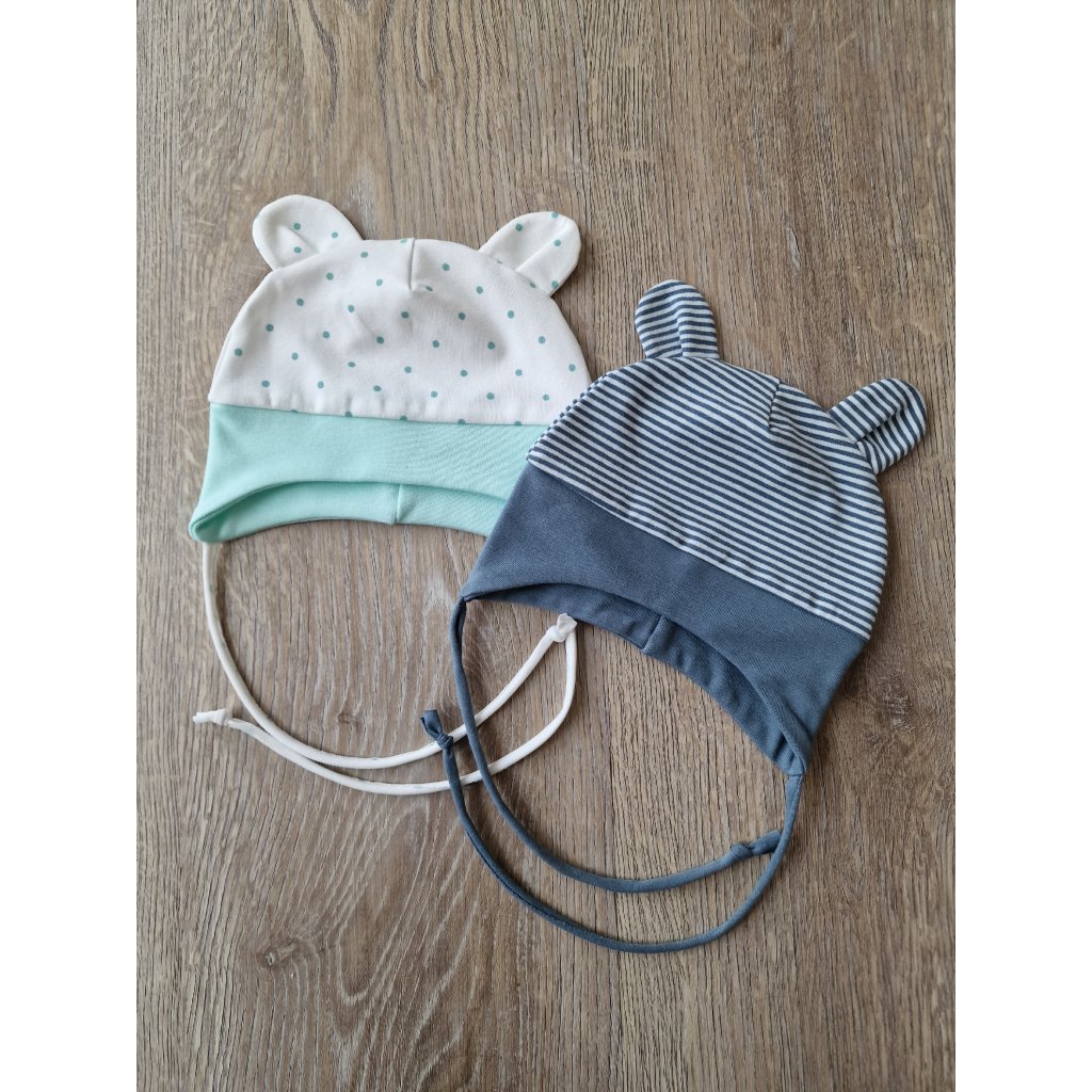 Dále set obsahuje střih na čepičku s oušky a zavazováním na šňůrky. Velikost čepičky je dostupná 36- 48cm