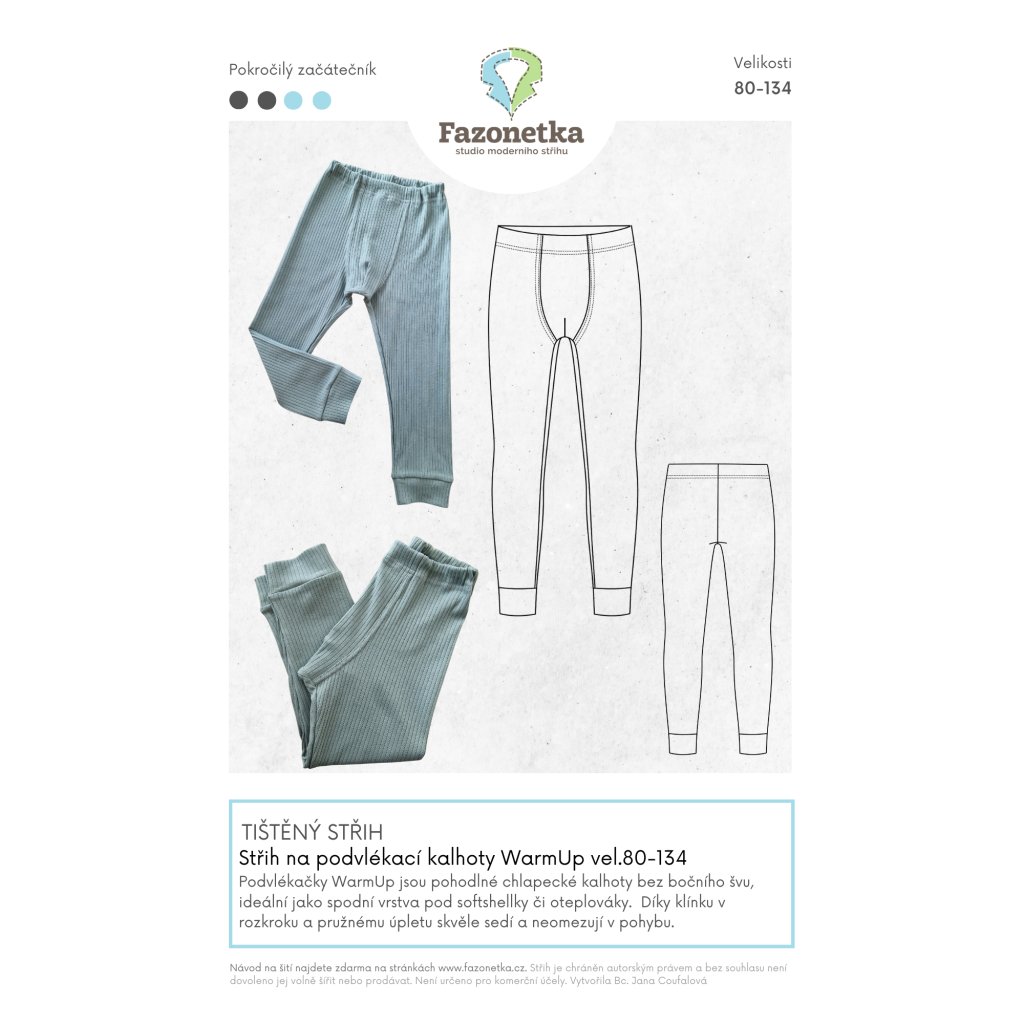 - tištěný střih na podvlékací kalhoty WarmUp ve vel. 80–134