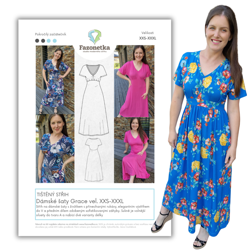 Tištěný střih na dámské šaty Grace vel.XXS-XXXL