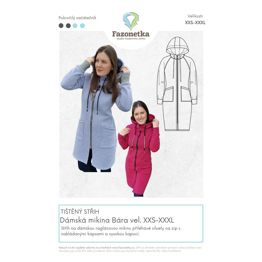 Představuji Vám tištěný střih na dámskou mikinu Bára– střih je délky ke kolenům s přiléhavou siluetou a je ideální i pro ty největší zmrzliny.