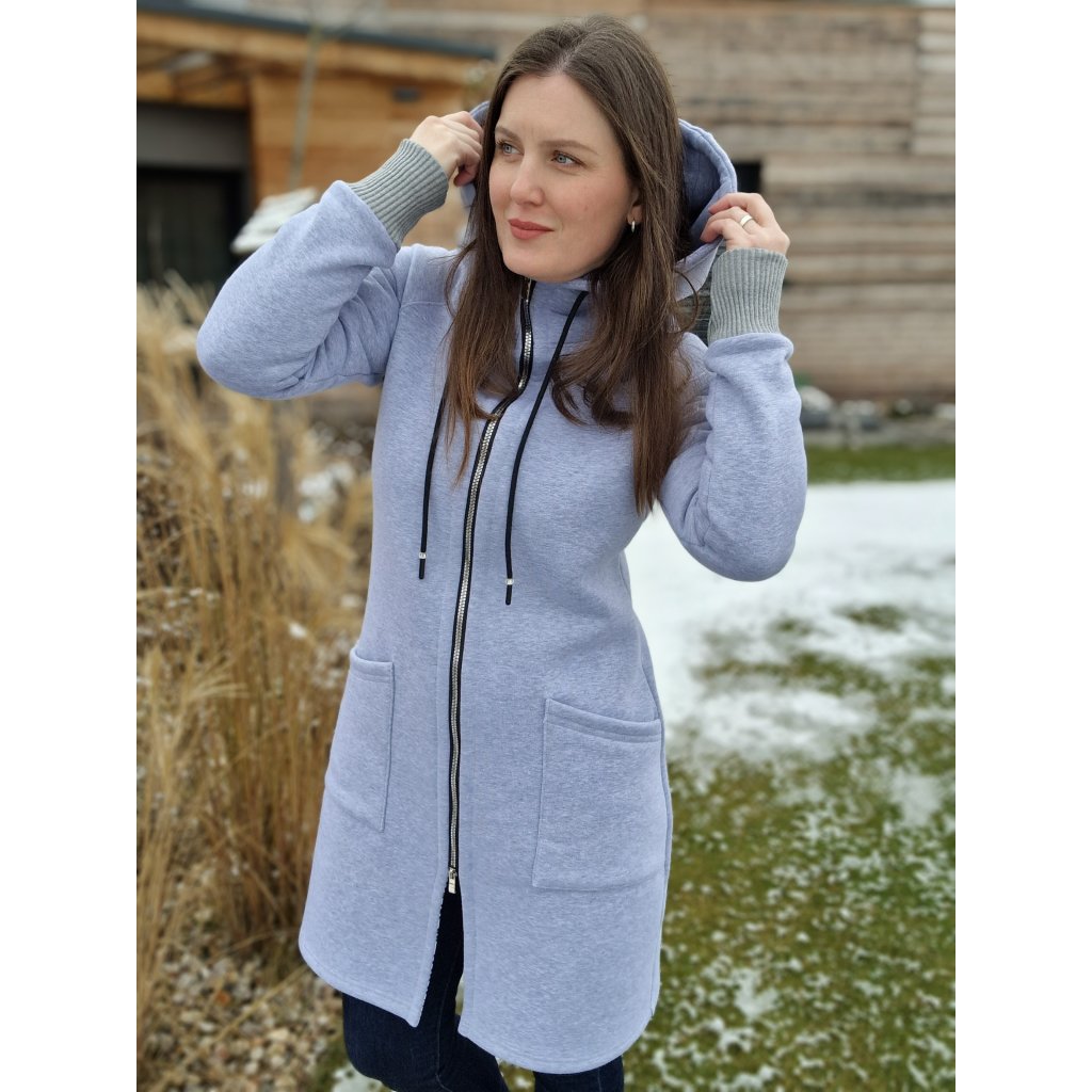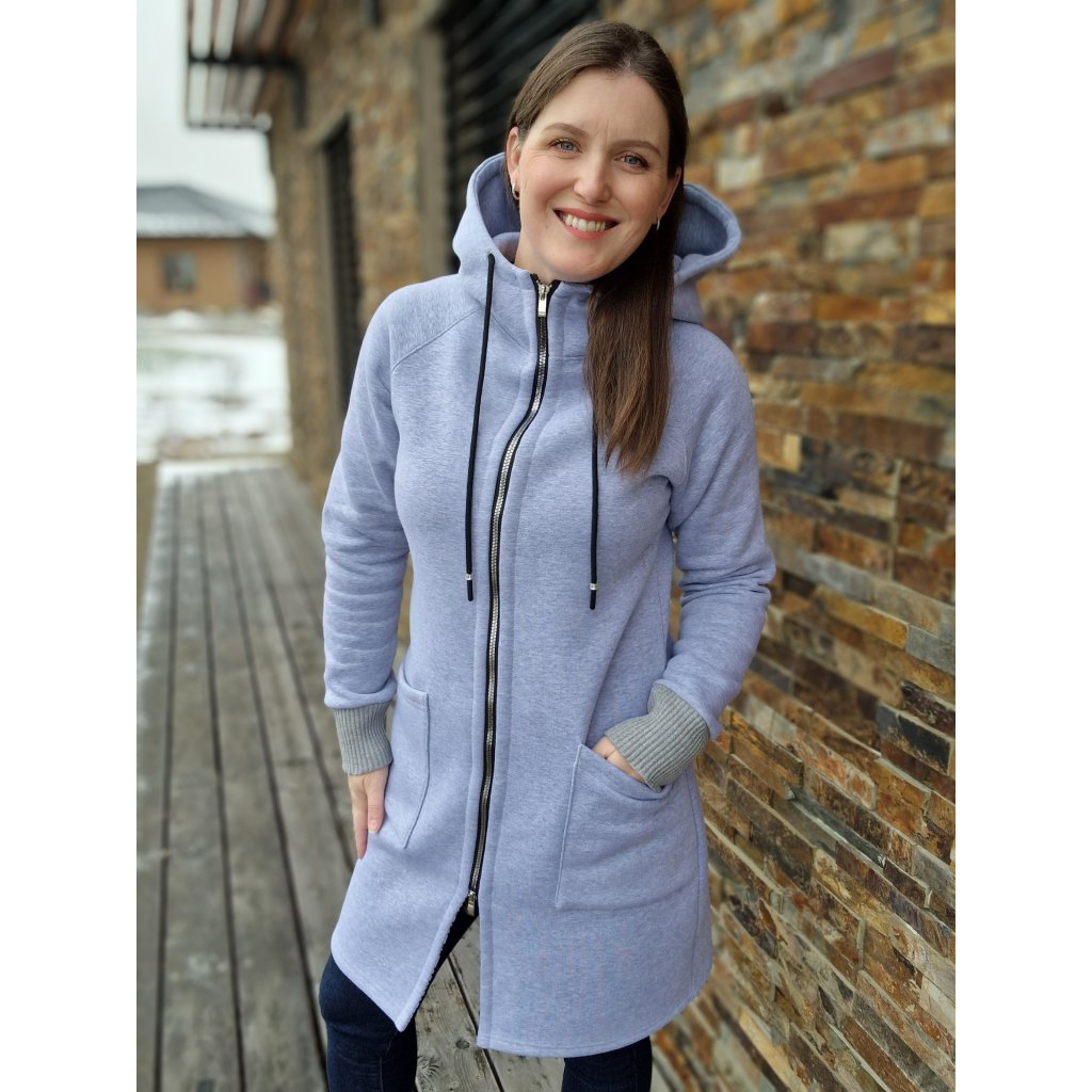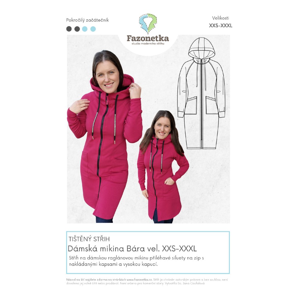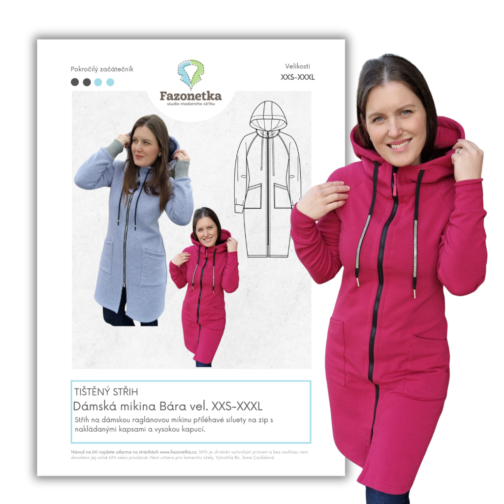 Představuji Vám tištěný střih na dámskou mikinu Bára– střih je délky ke kolenům s přiléhavou siluetou a je ideální i pro ty největší zmrzliny.