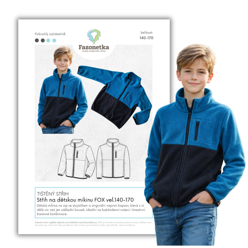 Dětská mikina Fox je střih, který spojuje praktičnost základního kousku s hravým detailem. Ušijete mikinu na zip, která bude pohodlná, variabilní a pokaždé jiná. Ať sáhnete po fleecu nebo alpenfleece, vznikne kousek, který děti unosí téměř celý rok.