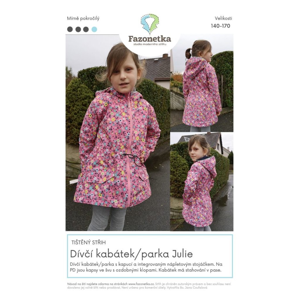 Tištěný střih na dívčí kabátek/parku Julie vel. 140-170