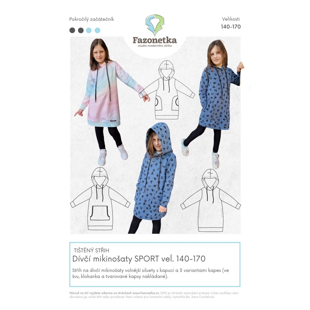 Tištěný střih na dívčí mikinošaty SPORT vel. 140-170