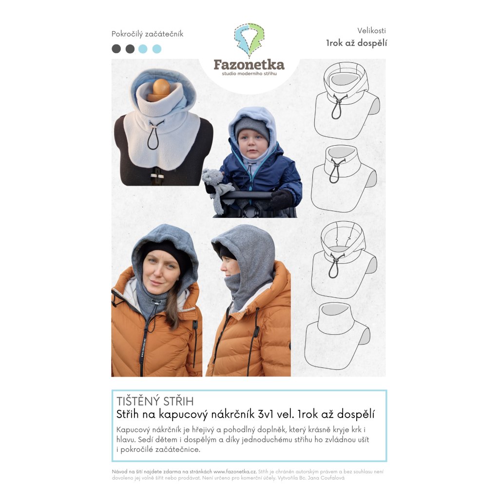 Tištěný střih na kapucový nákrčník 3v1 pro celou rodinu